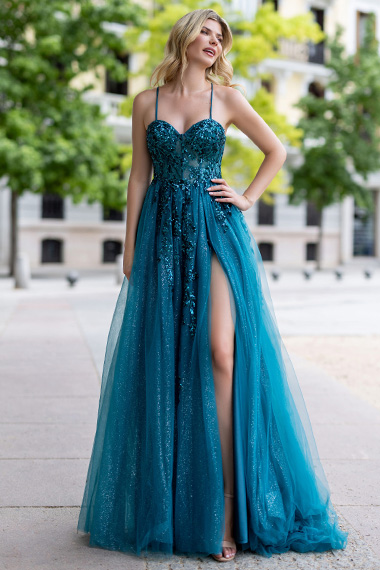 Le décolleté, les épaules, la taille, le dos et les jambes sont travaillés individuellement pour un effet à couper le souffle. De plus, la finition est minutieusement travaillée à la main : parfois minimaliste, parfois richement ornée de paillettes ou d'éléments en strass, de fines broderies, de perles et/ou de dentelles.